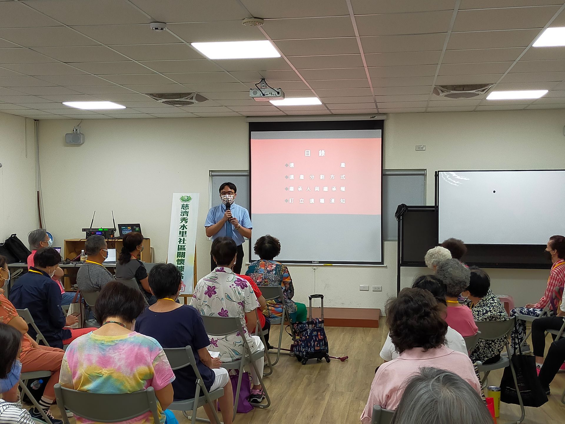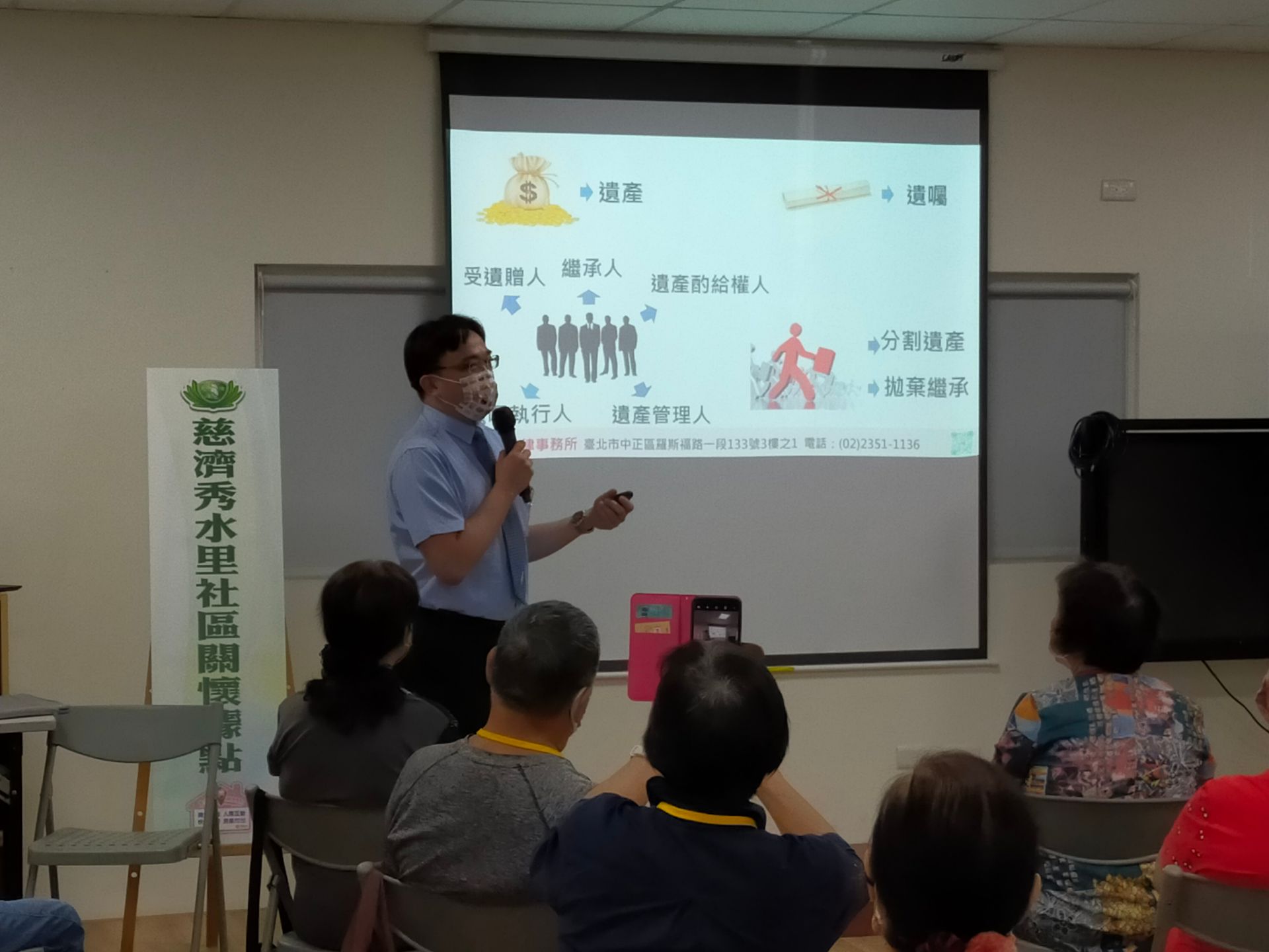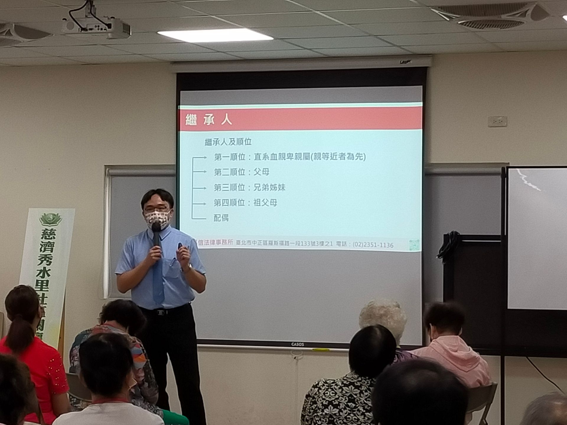 7/11陳仲豪律師受邀參與「新北市中和區秀水里慈濟關懷據點」在十秀市民活動中心A棟進行「點滴身後事」繼承與遺產法規介紹講座